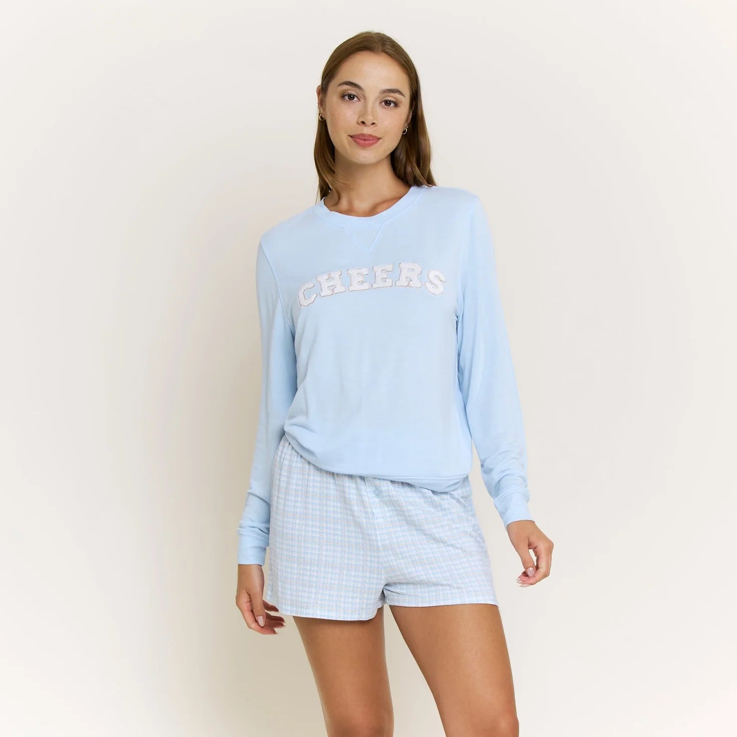 Celebrate relaxation with the Cheers PJ Set, designed to keep you comfy and cheerful all night long. This playful pajama set pairs soft, cozy fabrics with a fun, festive style that makes winding down feel like a celebration. Perfect for lounging, sleeping, or just raising a glass to downtime!